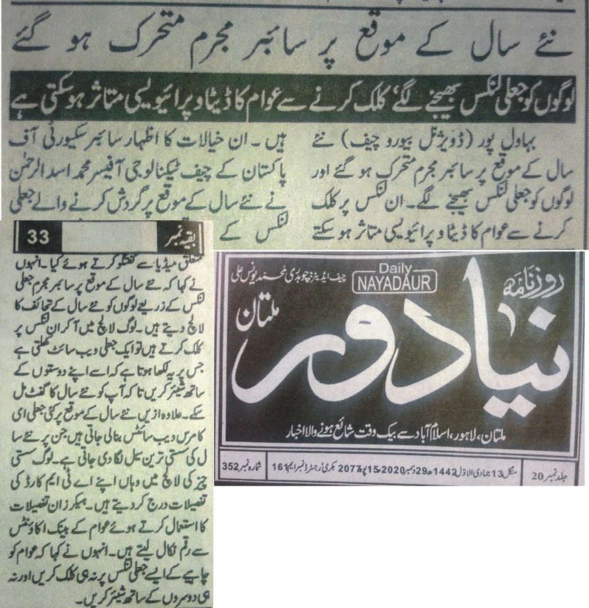 As the New Year approaches, cybercriminals have become active and are sending fake links to people, which can compromise their data and privacy. These thoughts were expressed by Muhammad Asad Ul Rehman, Chief Technology Officer of Cyber Security of Pakistan, while discussing the fake links circulating during the New Year celebrations with the media.