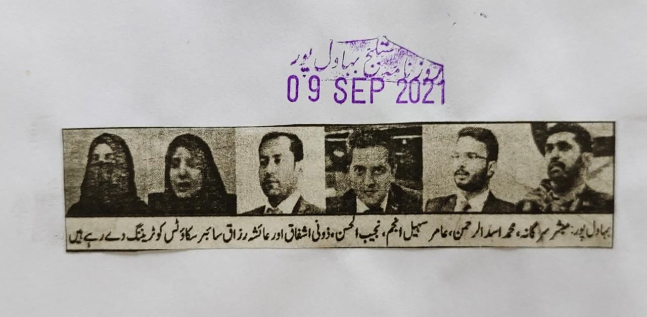 During the seven-day training, cybersecurity experts Muhammad Asad Ul Rehman and Mubashir Sargana provided insights into cybersecurity and safe internet usage. Cyber Crime Analyst FIA Syed Najeeb-ul-Hassan discussed the types of cyber crimes and their prevalence in society. Assistant Director FIA Zuni Ashfaq covered cyber crimes affecting women and the process of reporting such crimes. Assistant Director FIA Amir Sohail Anjum trained Cyber Scouts on cyber laws. Associate Lecturer from the Psychology Department IUB, Arisha Khan Durani, addressed stress counseling for victims of cyber crimes, and Scout Coordinator Ayesha Razaq discussed the Cyber Security of Pakistan’s stress counseling desk.
